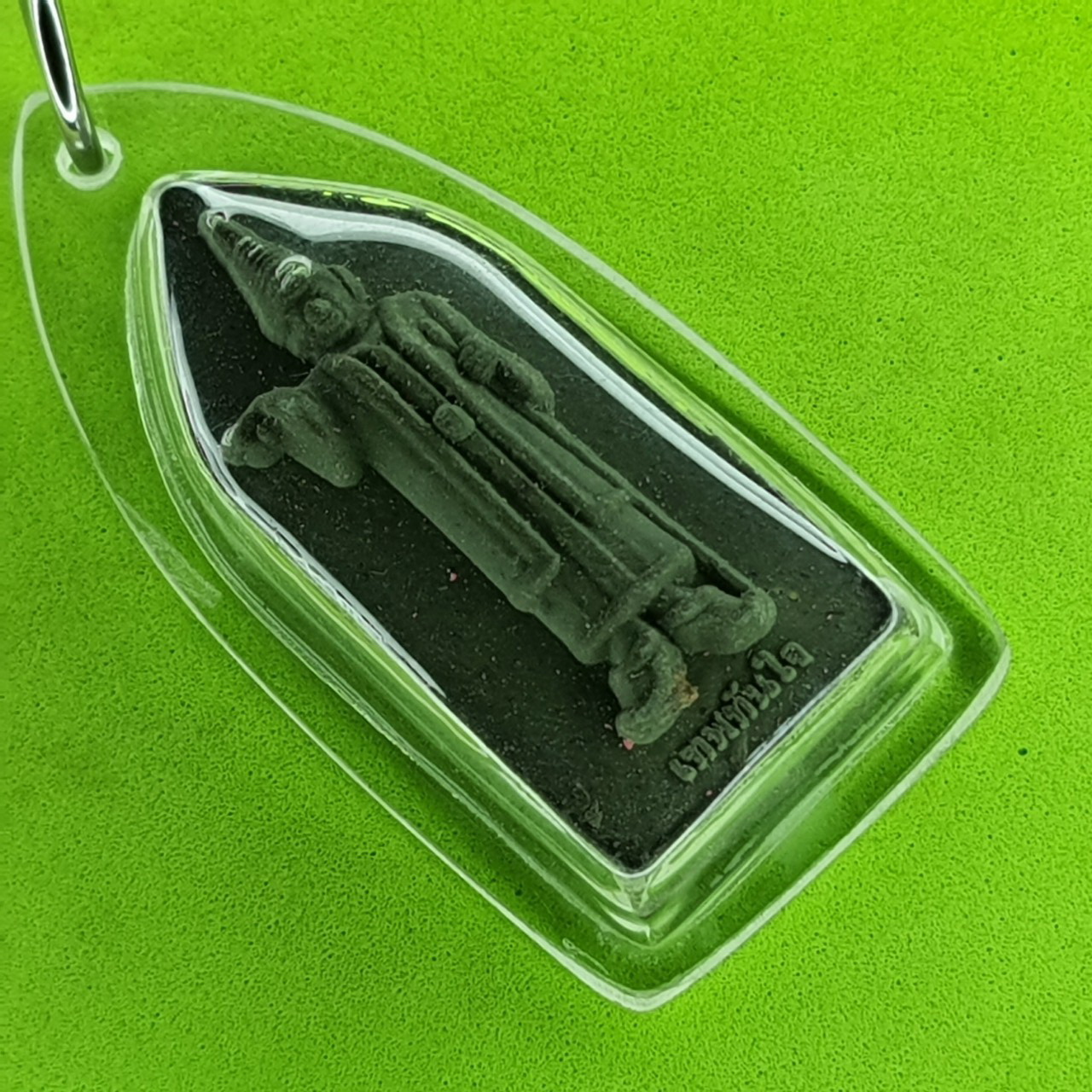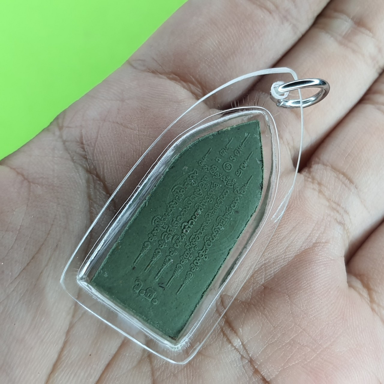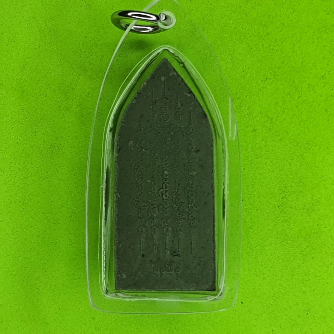 และเกจิอาจารย์ชื่อดังระดับประเทศประจุพลังเพิ่มความขลังความศักดิ์สิทธิ์มากที่สุด ส่วนด้านหลัง เป็นยันต์ห้าแถวมุงกุฏ มีความเชื่อว่า จะส่งเสริมความสำเร็จการงาน การเงิน ค้าขาย โชคลาภเงินทองไหลมาเทมาไม่ขาดสาย