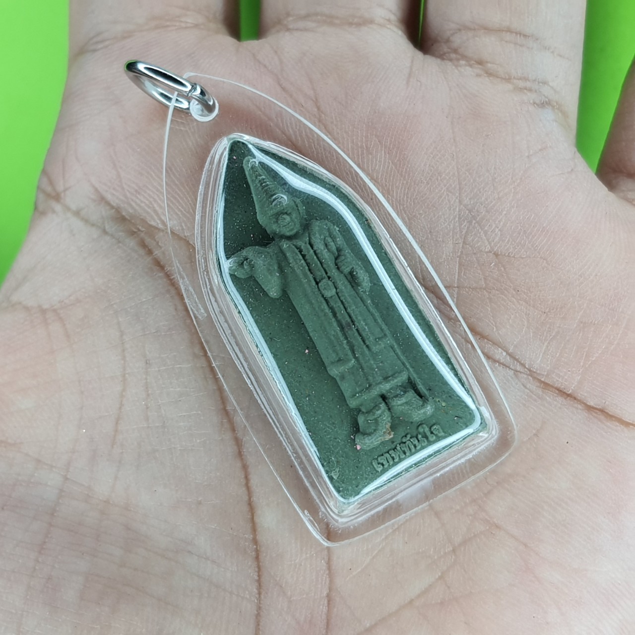 เทพทันใจ รุ่น เปรี้ยงสมปรารถนา สีเขียว เลี่ยมกรอบ เทพทันใจพม่า เทพทันใจ พระเทพทันใจ จี้เทพทันใจ