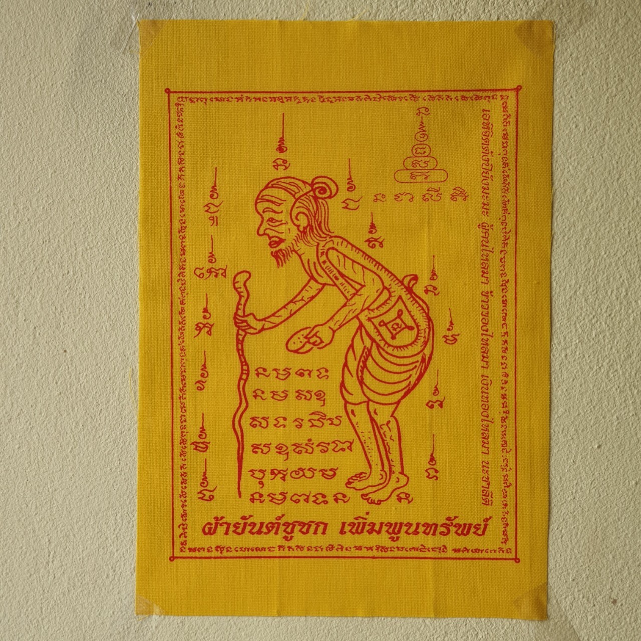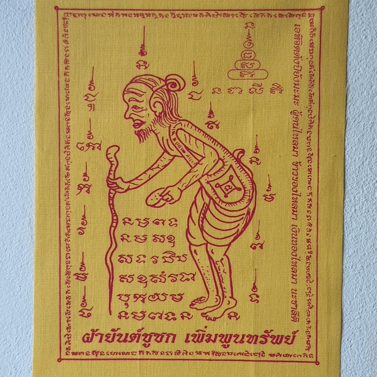 ผ้ายันต์ ชูชก สีเหลือง สูง 10 นิ้ว กว้าง 7 นิ้ว