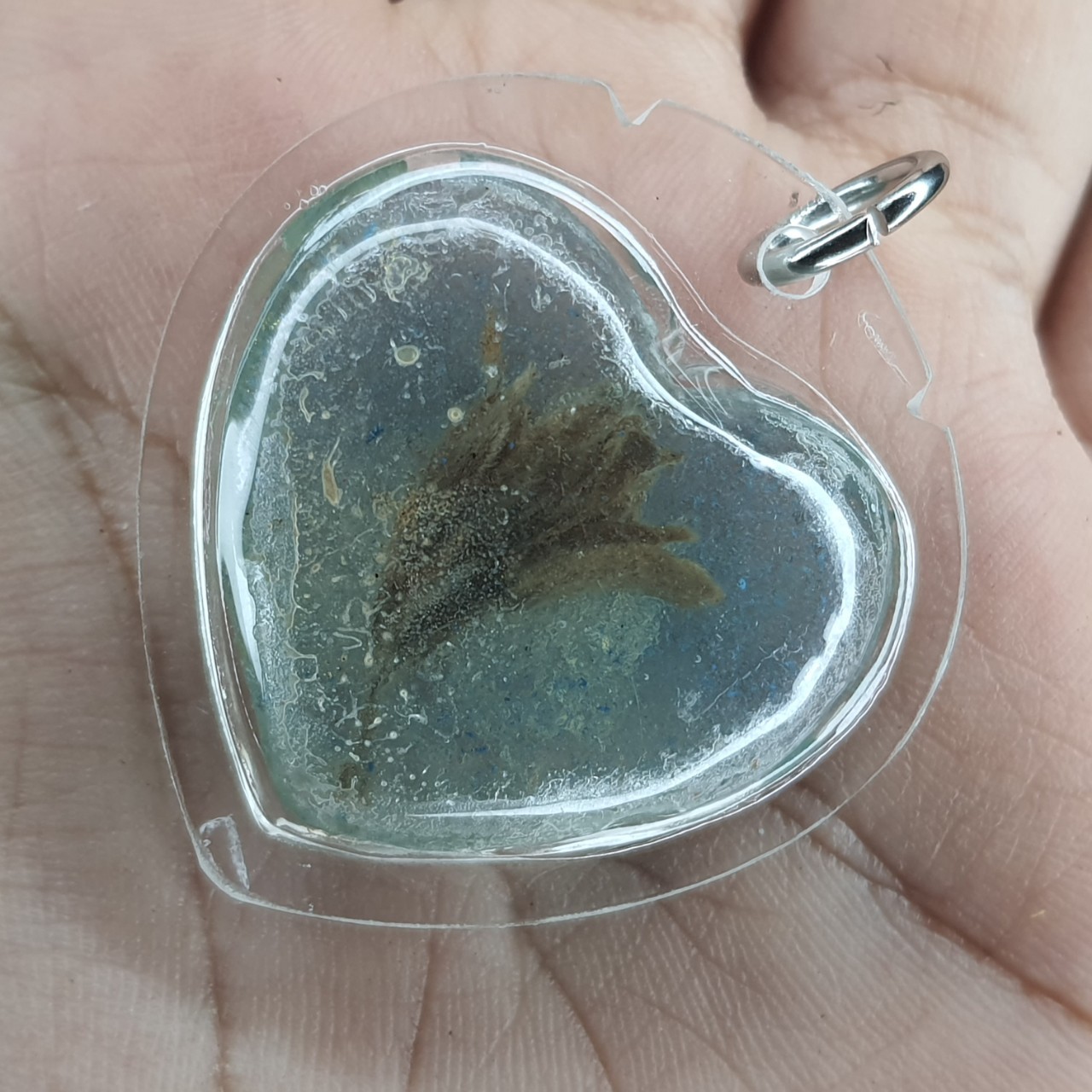 หัวใจ ดอกเถาหลง หญิงใช้ สีฟ้า อัดกรอบพลาสติกกันน้ำ